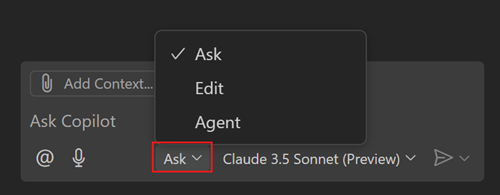 Screenshot of the Copilot Chat menu in the VS Code Command Center