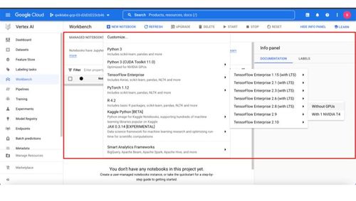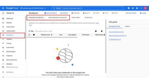图 4.3 – Google Cloud 控制台中 Vertex AI 工作台 UI