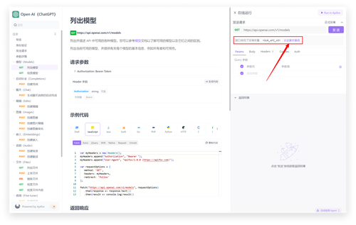 OpenAI 接口文档界面