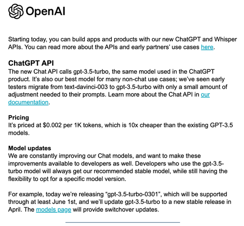 OpenAI允許開發者整合ChatGPT到其app中比現有GPT-3.5更快更抵