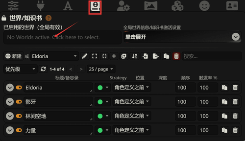 角色选项中的世界书绑定图标截图