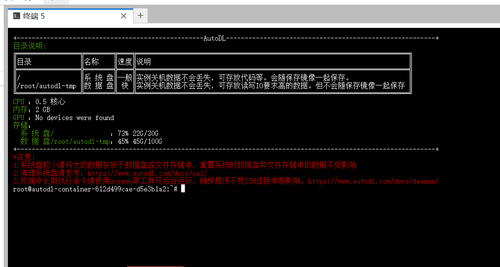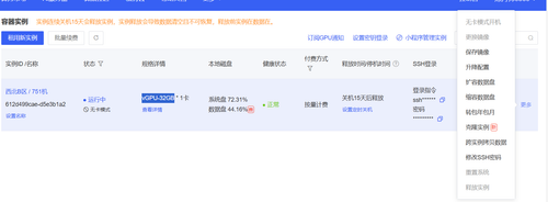 服务器详情控制台界面截图