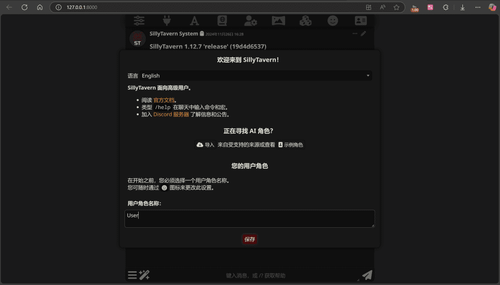 Silly Tavern 首次打开设置界面截图