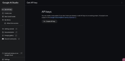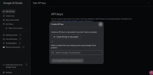 Google AI Studio创建API密钥的界面