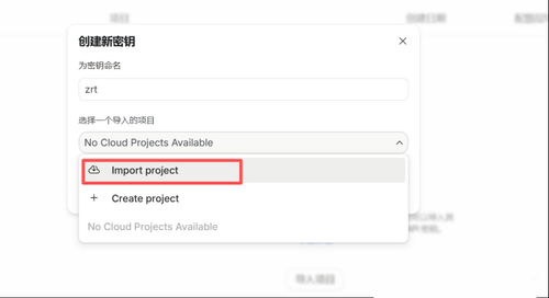 在现有项目中创建API密钥