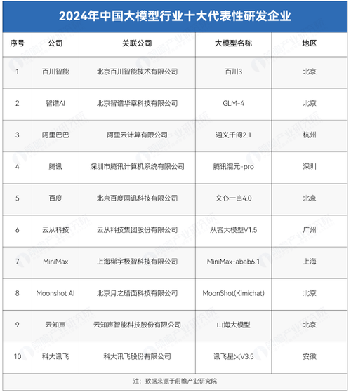 国内大模型厂商排名榜前十有
