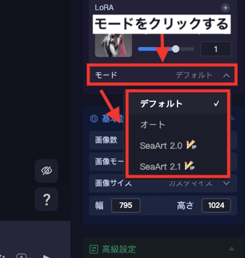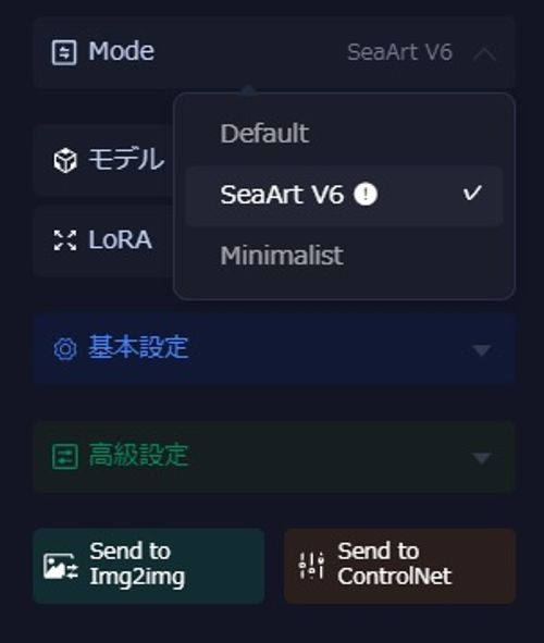 SeaArtの生成モード