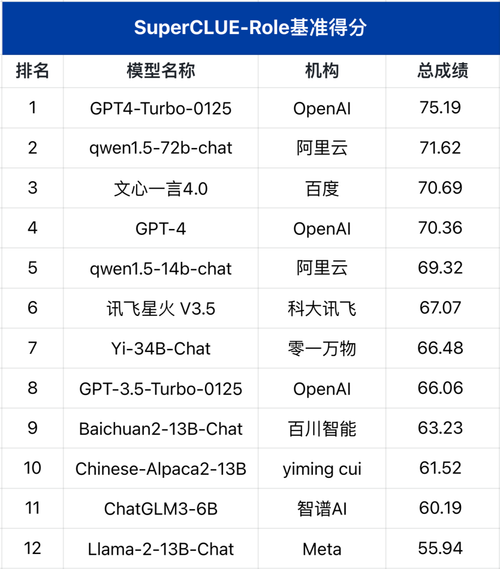 superclue:2023年10月中文大模型榜单 gpt4继续霸榜位列第一