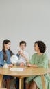 Woman in White Shirt Sitting beside Woman in White Long Sleeve Shirt