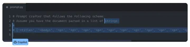 Screenshot showing Copilot suggesting HTML structure inline suggestion.