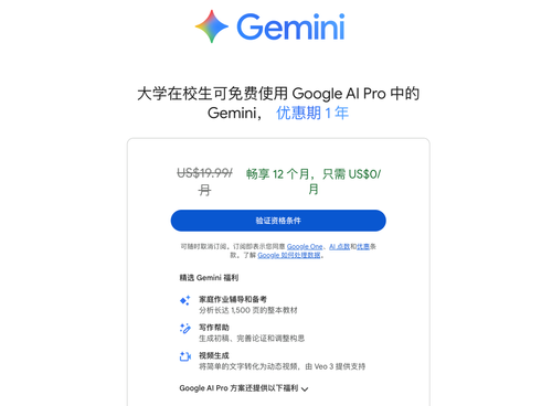 Gemini Advanced学生免费计划注册流程