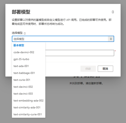 Azure AI Foundry 门户中部署模型 UI 的屏幕截图。