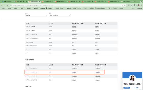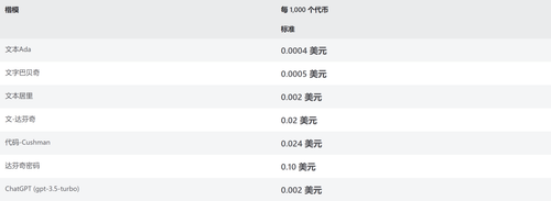 azure openai 接口对比,价格表?企业用