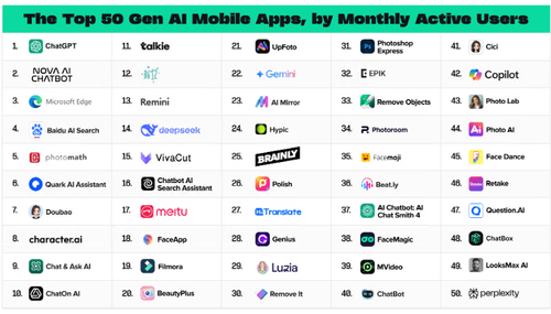 生成式AI應用100強ChatGPT霸榜挑戰者出現消費者最愛是這些