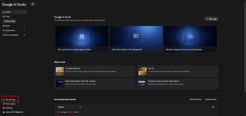 The Get API key button in Google AI Studio