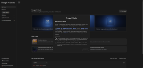 はじめてGoogle AI Studioを利用する場合に表示されるWelcome画面