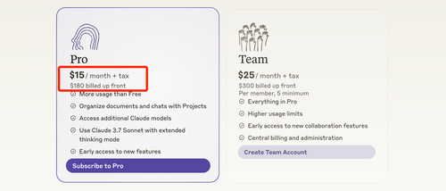 Claude收費方案。取自Anthropic官網