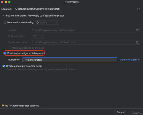 在pycharm中配置pytorch出现的问题 macos