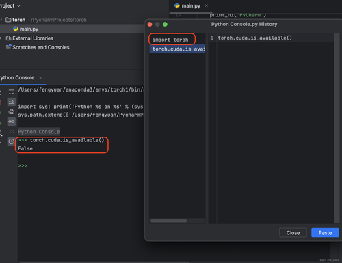 mac下anaconda安装了pytorch,在pycharm无法import torch