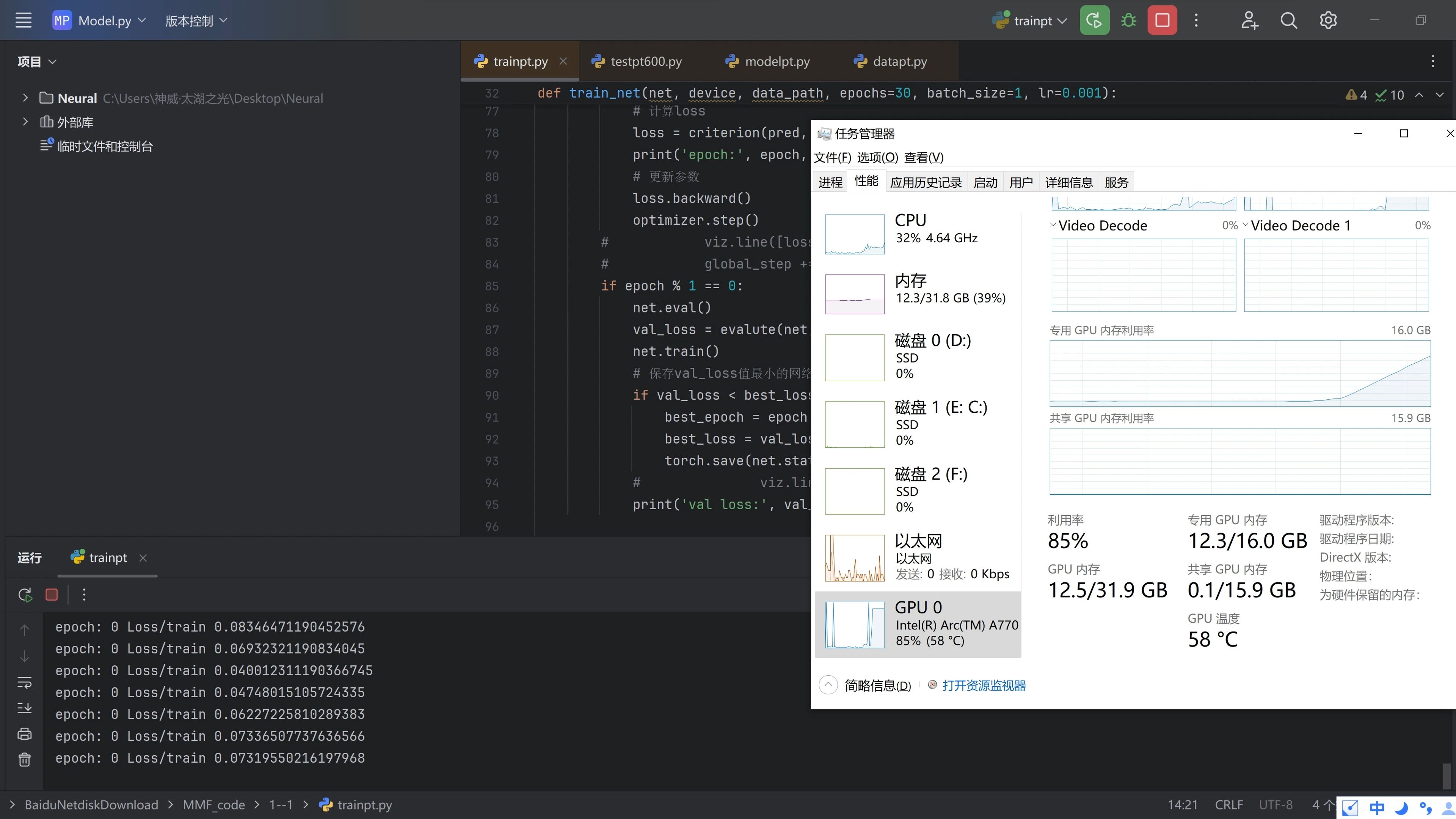 很早就听说i卡已经原生支持pytorch,于是想在寝室用自己的intel arc a770 16g进修一下神经网络,结果没想到配置环境这么简单,intel已经全部打包好了,我们只需要运行两行代码即可,这比我之前配cuda环境简单的多,实际使用的时候只需要把device = torch.device("cuda" if torch.xpu.is_available() else "cpu")中的cuda改成xpu就行了,或者直接device = "xpu",如果有感兴趣的小伙伴可以评论区或者私信一起交流啊,