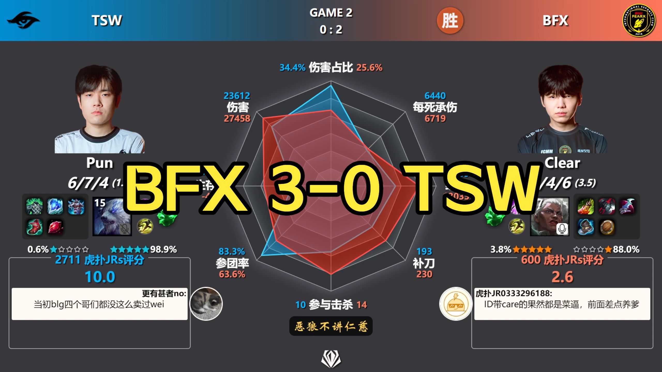 越南Bin哥10.0狗熊力竭!BFX 3-0 TSW 赛后数据雷达图+虎扑评分 | 2026全球先锋赛