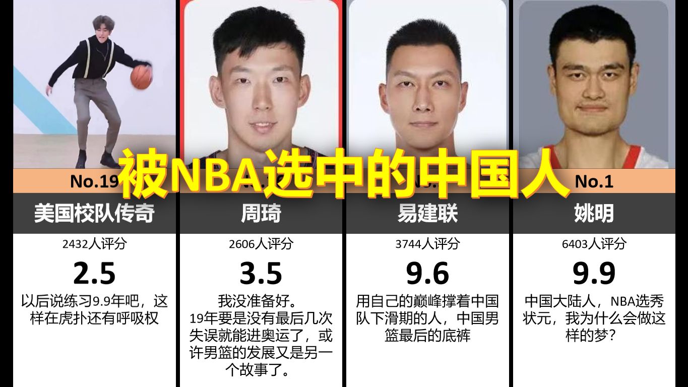 虎扑:被NBA选中的中国人评分(选取评分人数前20名) 评分有高有低,评分人数有多有少,人物可能乱入,评论可能逆天,请合理看待。