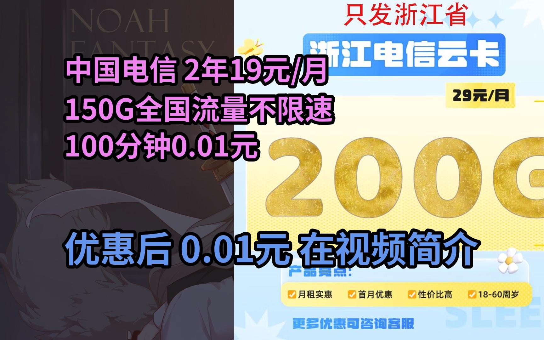 浙江省卡29元200G全国流量不限速200分钟