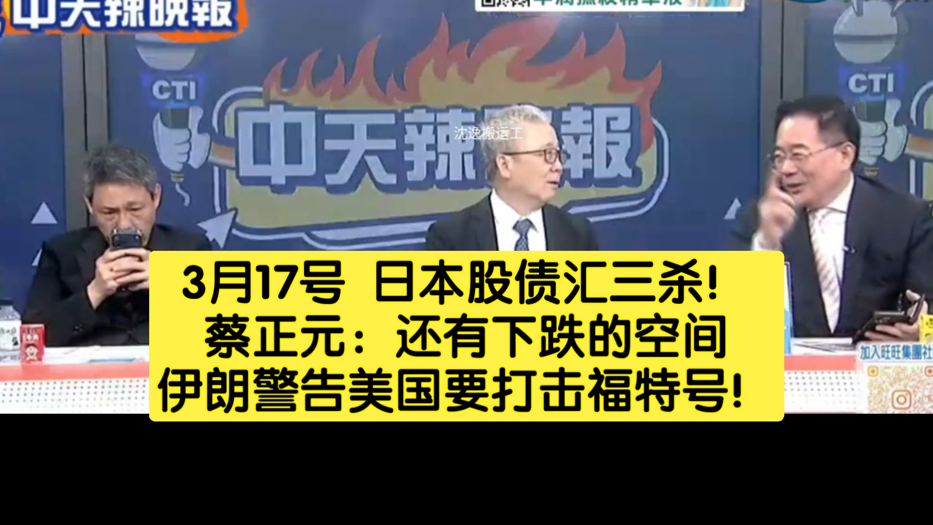 3月17号 日本股债汇三杀!蔡正元:还有下跌的空间。伊朗警告美国要打击福特号!