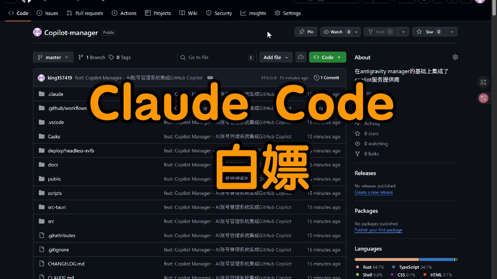 在antigravity manager的基础上拓展了GitHub copilot的服务提供商。对于有github教育认证账号的就可以用上免费的opus4.5了,很香。代码已经开源在https://github.com/king157419/Copilot-manager