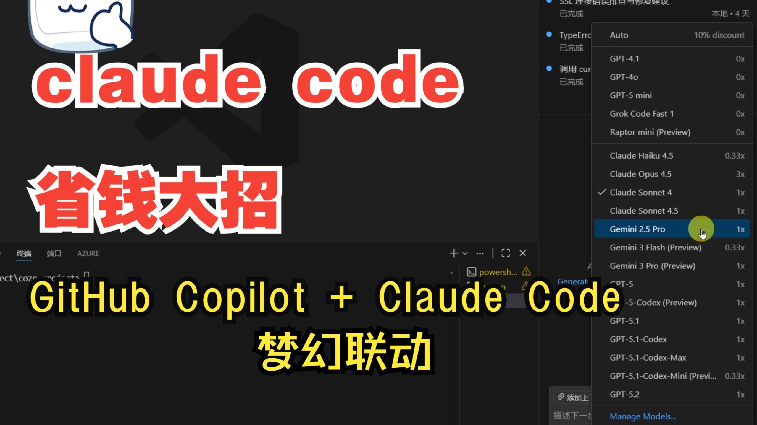 在这期视频中,我将 Github Copilot 背后的模型接入到 Claude Code 环境中,实现了跨平台的 AI 编程融合! 省钱的同时,让你拥有两款AI编程工具。 如果你对 AI 编程工具的边界感到好奇,千万别错过!