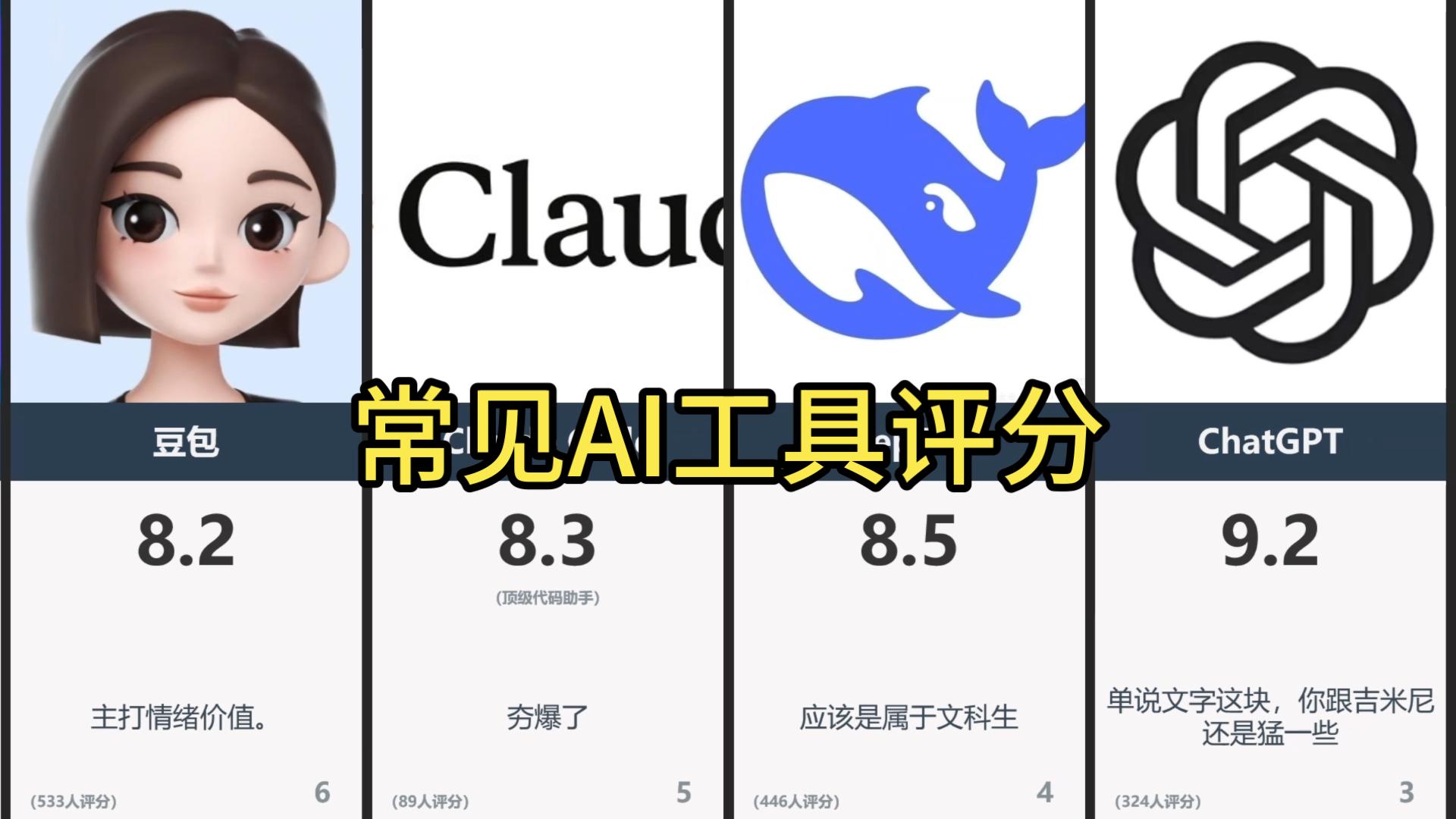 本期视频带来一份 《常见AI工具评分排名》盘点。 通过 虎扑网友评分数据,我们整理出了当前热门AI工具的真实口碑表现,从早期的 Siri 到如今火爆的 DeepSeek、ChatGPT、Gemini、Grok,谁才是真正的AI王者? 榜单中可以看到: Grok 以 9.7 分登顶榜首 Gemini、ChatGPT 紧随其后 DeepSeek、Claude Code 也获得极高评价 而曾经的语音助手 Siri 却跌入低分区 这份榜单不仅能看出 AI技术实力的差距,也能看到 用户体验、情绪价值、生产力工具属性
