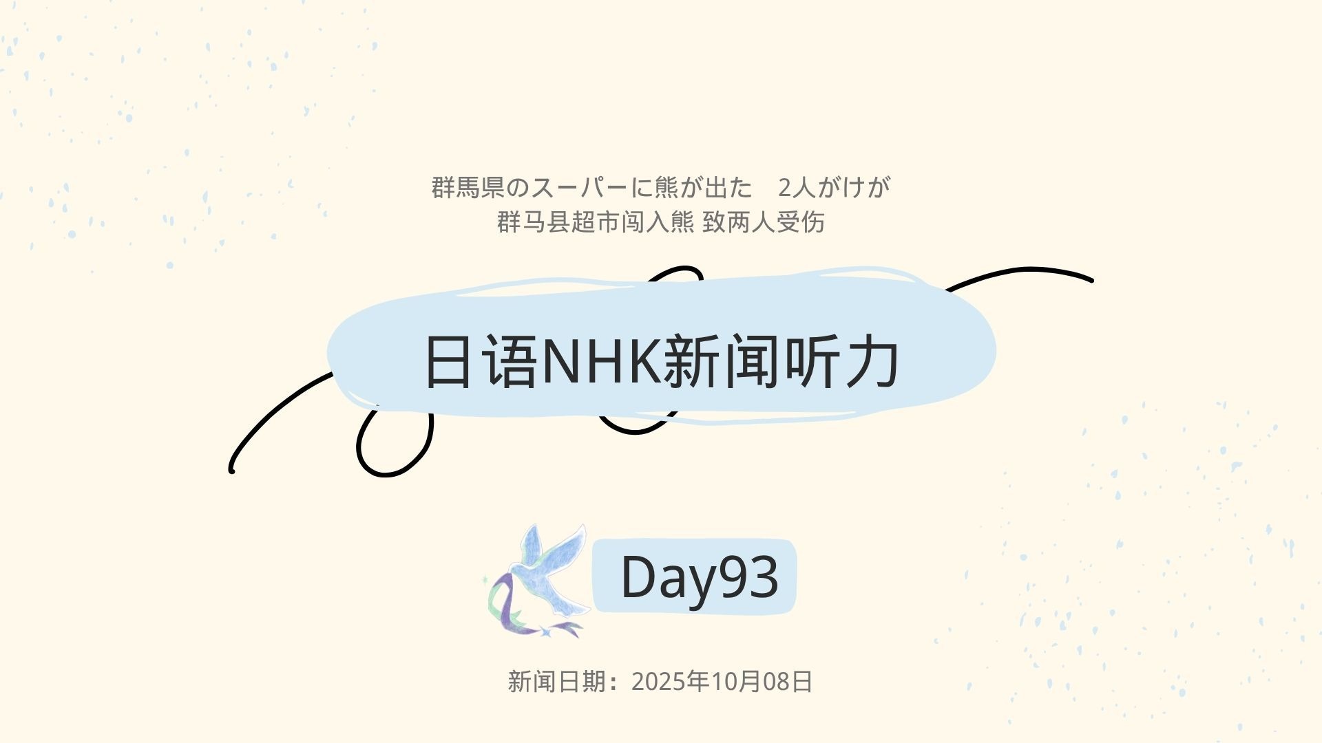 【日语NHK Easy 新闻听力】Day93-群马县超市闯入熊 致两人受伤 |【影子跟读】| NHK新闻 | N4/N5可学