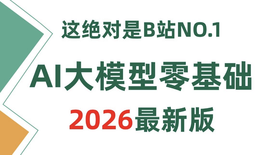 2026最新最全AI大模型应用开发全套教程(LLM+应用落地+RAG+Agent+Langchain)从入门到精通,全部都讲明白了!通俗易懂,学完即就业!