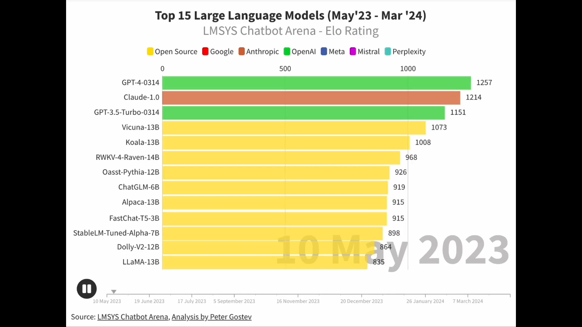 克利lmsys大语言模型排行版从去年5月开始的变化趋势