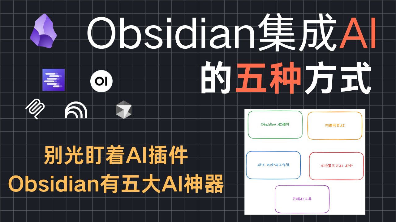 很多人以为“Obsidian连接AI = 装插件” 你是不是也遇到过——Obsidian装了AI插件,但总觉得功能有限?其实,Obsidian接入AI的方式远不止一种!在这期视频里,我会完整讲解5种不同的Obsidian + AI整合方式,帮你解决知识库效率低下、插件能力不足的问题。