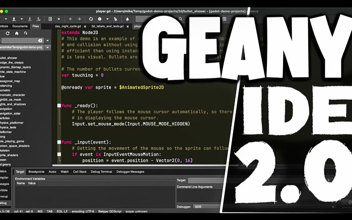 https://www.youtube.com/watch?v=VkG1YrNgb7U Geany IDE 是一款开源代码编辑器,自 2005 年开始开发。 为了庆祝它的 18 岁生日,他们刚刚发布了 Geany 2.0,除其他功能外,还增加了对 GDScript(Godot 游戏引擎的主要编程语言)的支持。 在这段视频中,我们将快速了解 Geany,它适用于 Windows、Mac 和 Linux(基本上适用于任何支持 GTK 的平台)。