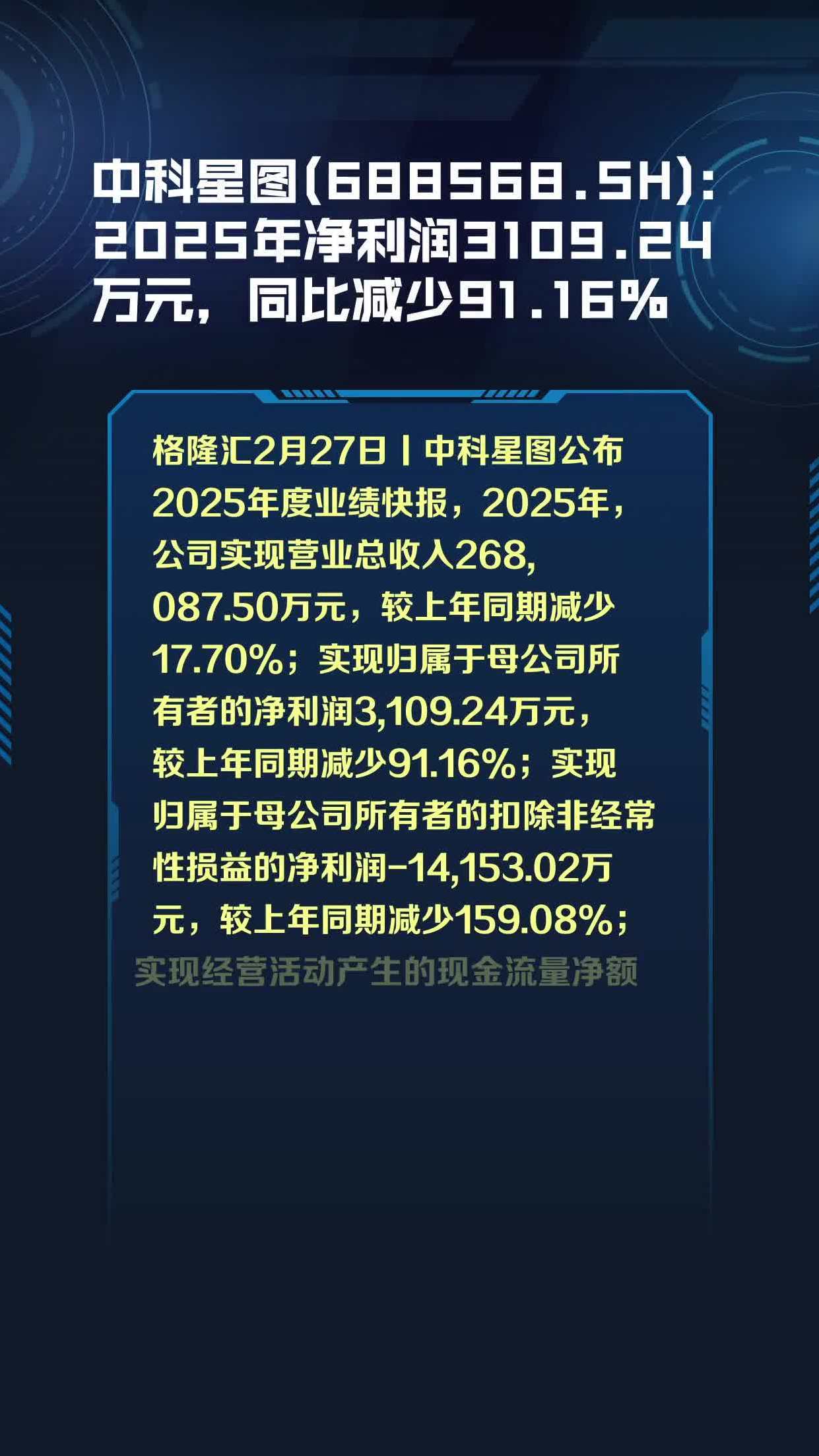 中科星图(688568.SH):2025年净利润3109.24万元,同比减少91.16%