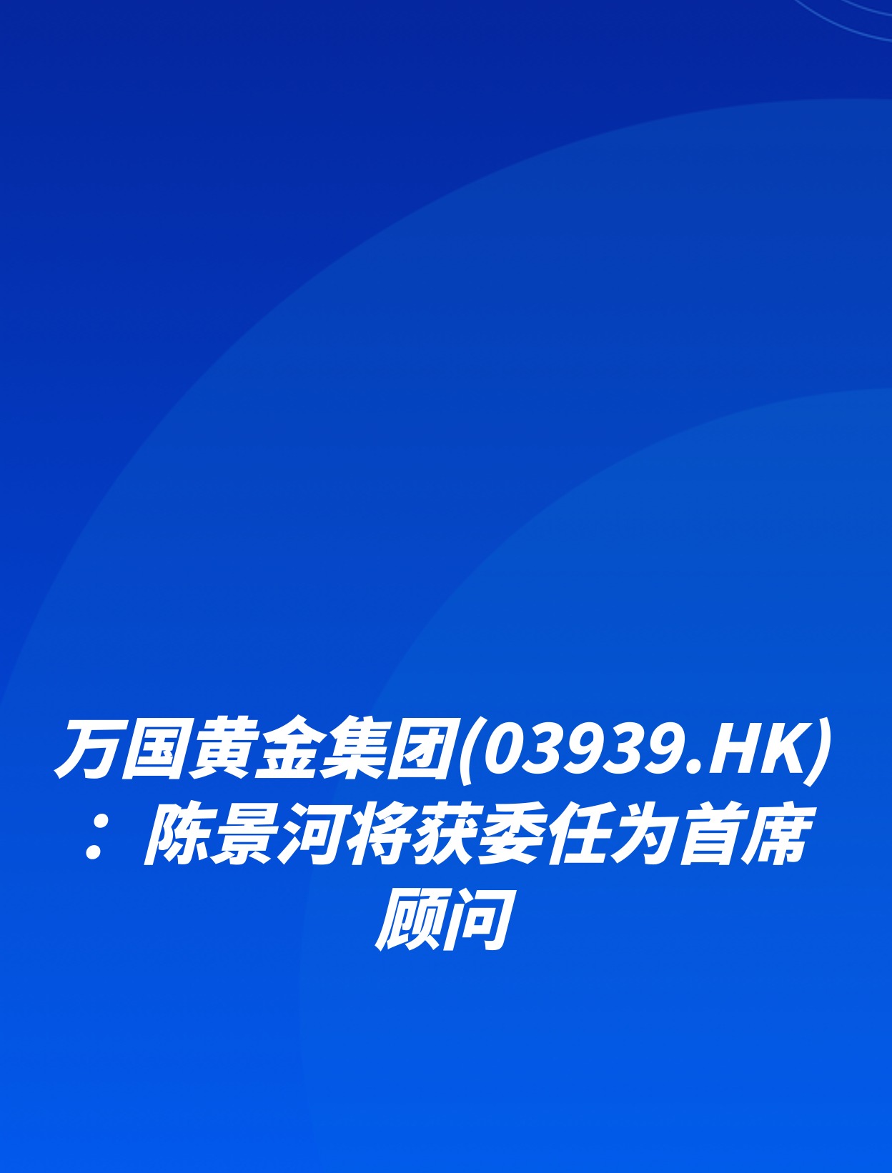 万国黄金集团(03939.HK):陈景河将获委任为首席顾问