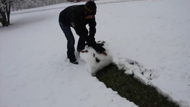这雪球真好玩,小哥在雪地上滚大雪球,瞬间回到了童年