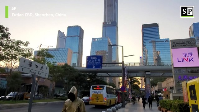 Shenzhen’s central business district in Futian at Fuhua Road, the main road in this area. Shenzhen Festival Avenue is set up as a street with food carts and art, running from Central Walk mall towards One Avenue, passing the Sheraton and Ritz-Carlton hotels. Subscribe below: ► https://www.youtube.c...