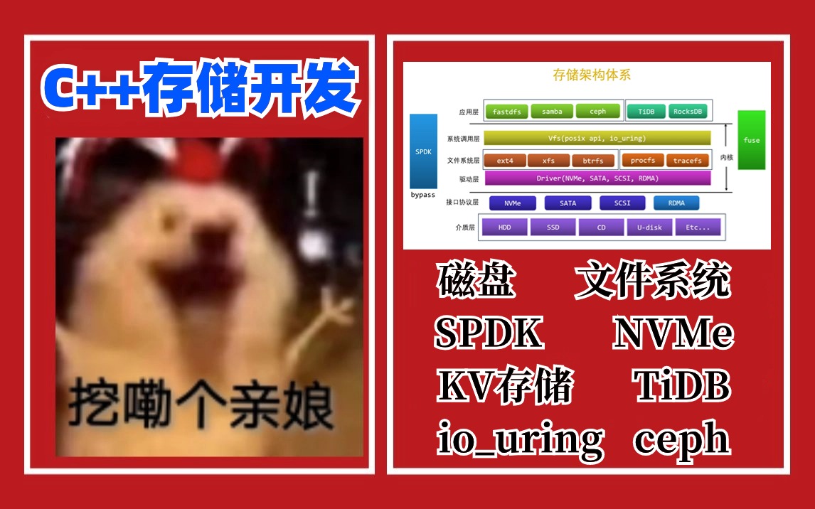 C++存储技术全栈学习:加老师微:cz1625358265(备注999)。 自下而上-存储全栈(TiDB/RockDB/SPDK/fuse/ceph/NVMe/ext4)