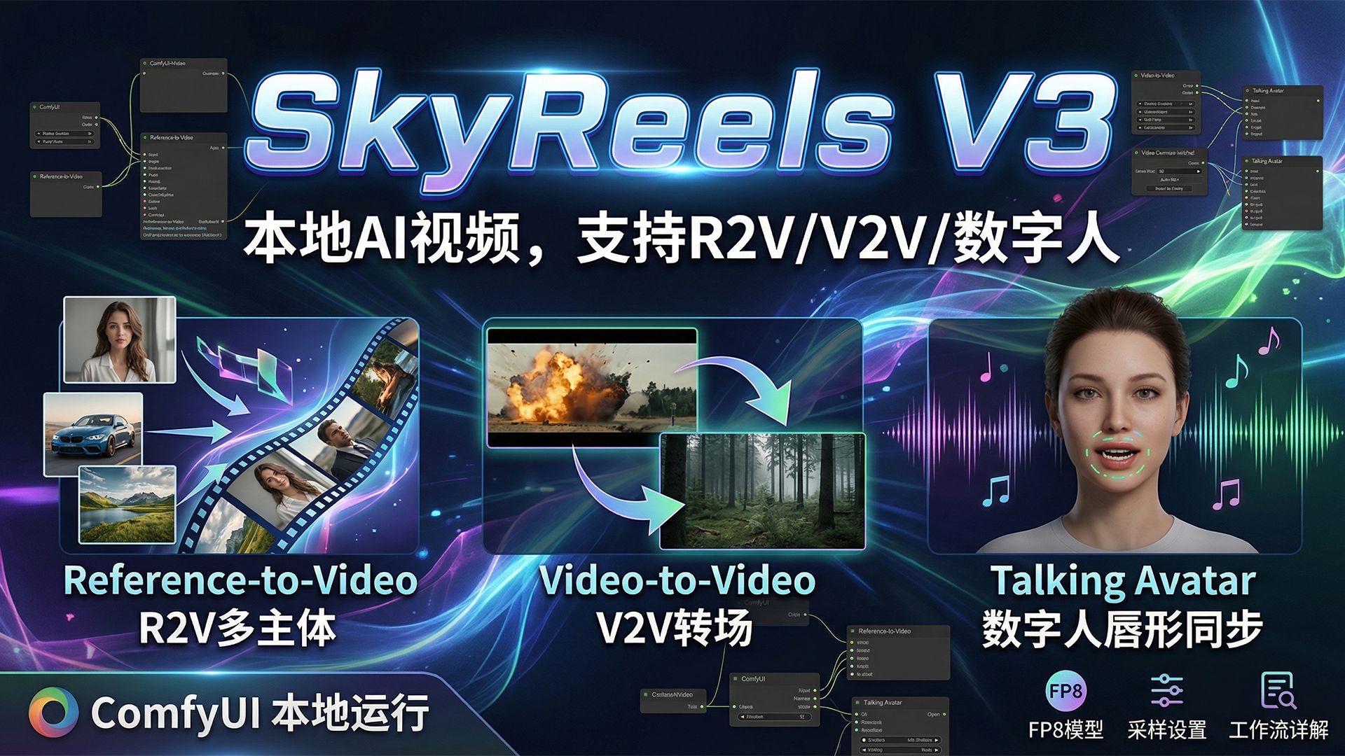 这是油管Benji’s AI Playground的视频作品。本人进行整理、翻译和剪辑。 在本视频中,我们将深入探讨SkyReels V3,这是ComfyUI中最新的开源AI视频模型,可在本地运行。我们将探索其核心功能,包括支持多主体参考视频、用于电影级转场的视频间切换,以及带有音频唇形同步的全新语音虚拟形象功能。您将看到完整的流程演示,从设置FP8模型到管理视频扩展和采样步骤以获得最佳质量。 本内容非常适合AI视频创作者、ComfyUI用户以及希望在自己的硬件上运行强大生成模型的技术爱好者。无论您是