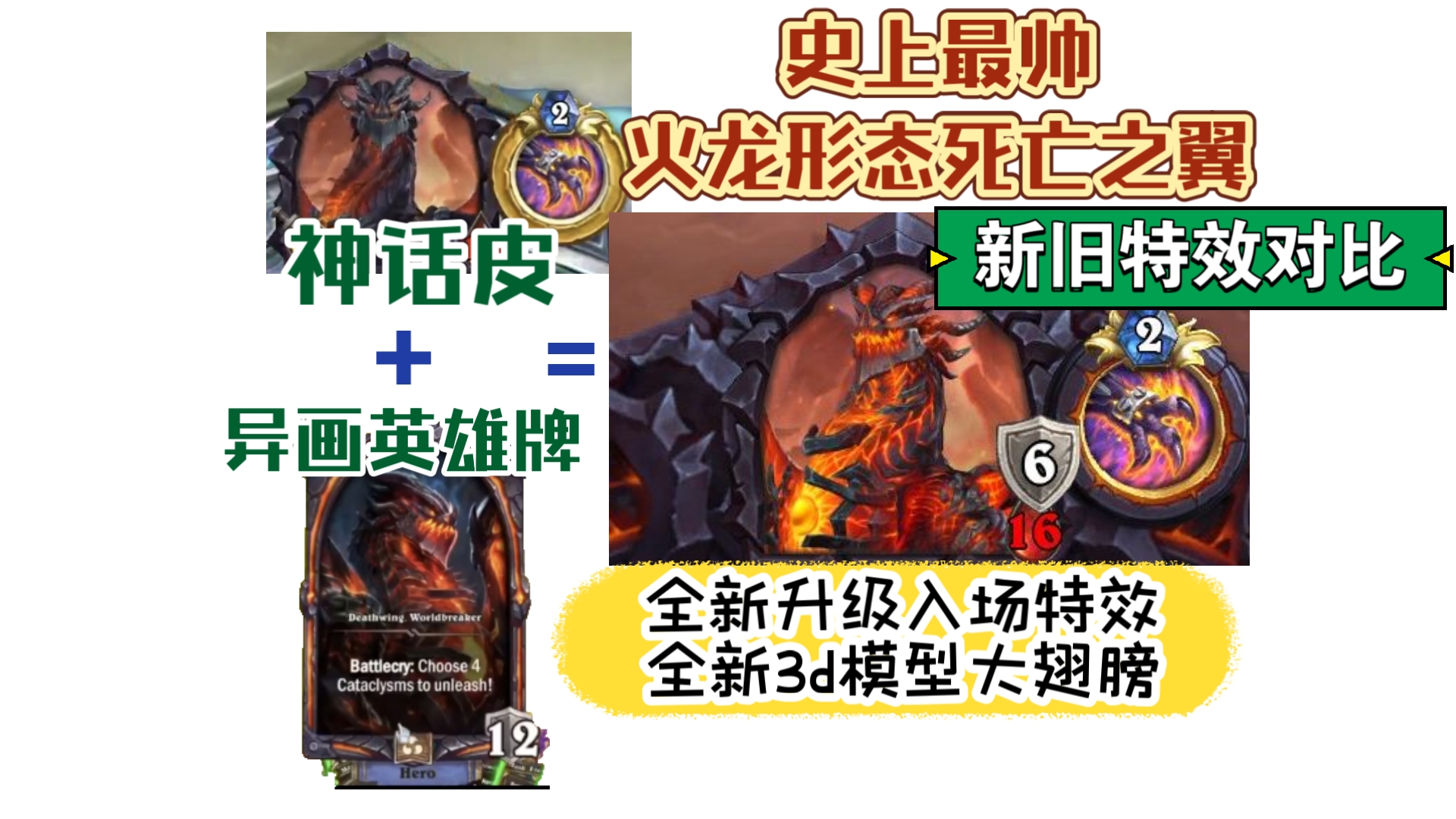 史上最帅火龙形态死亡之翼!神话皮+异画英雄牌对局变身出现,全新升级入场特效,全新3d模型大翅膀,新旧特效对比!