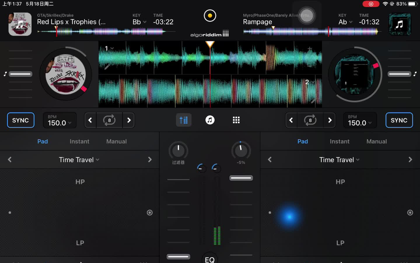 Ipad+Djay免费版使用练习 150BPM爽快曲