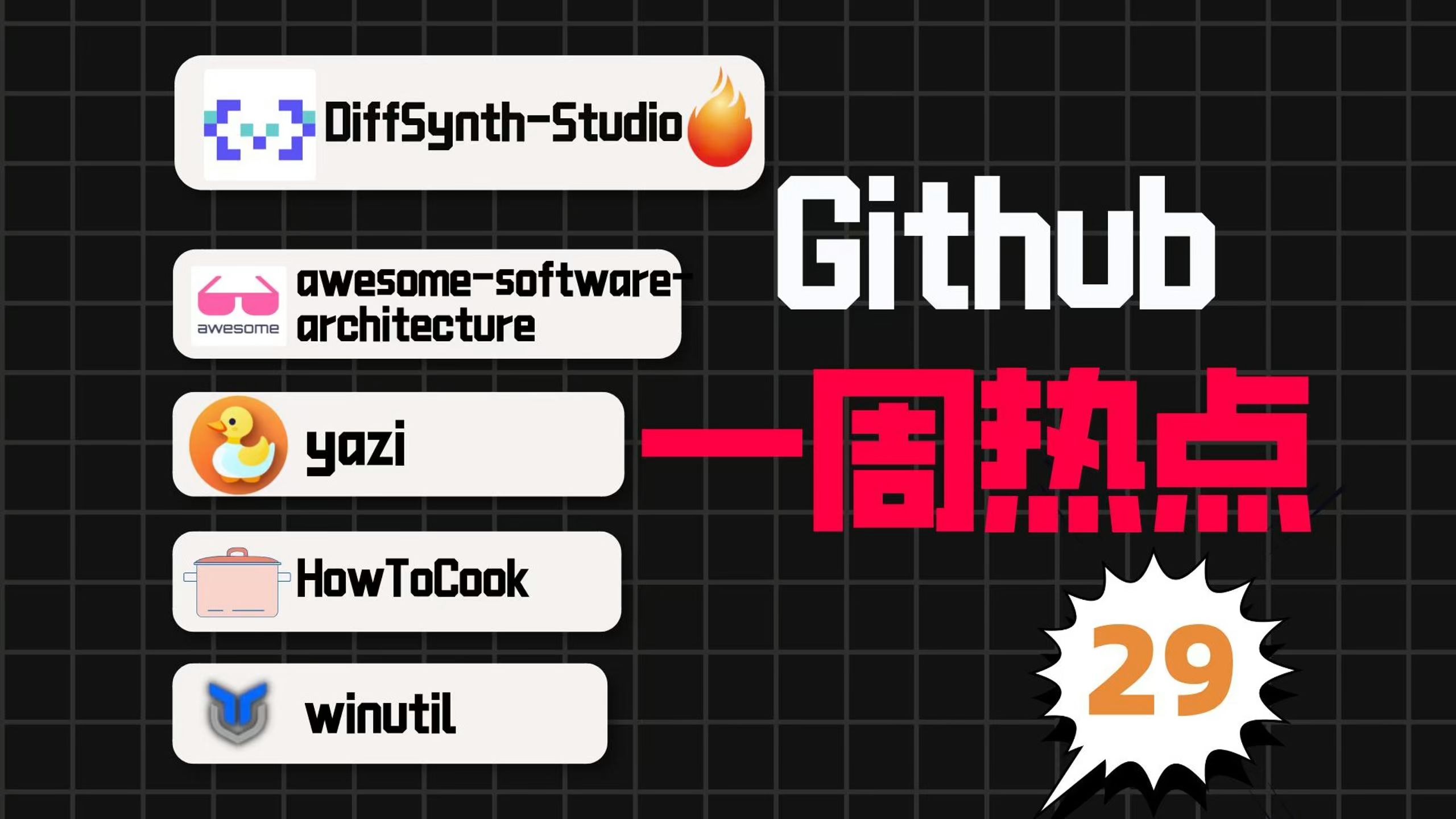 一周热点汇总第29期(2024/06/23-06/29) ,本期包括新的Diffusion引擎、awesome软件架构、超快的终端文件管理器、程序员饭方法指南和Win11实用工具,一起来看内容吧。 1、项目名称:DiffSynth-Studio - Diffusion引擎