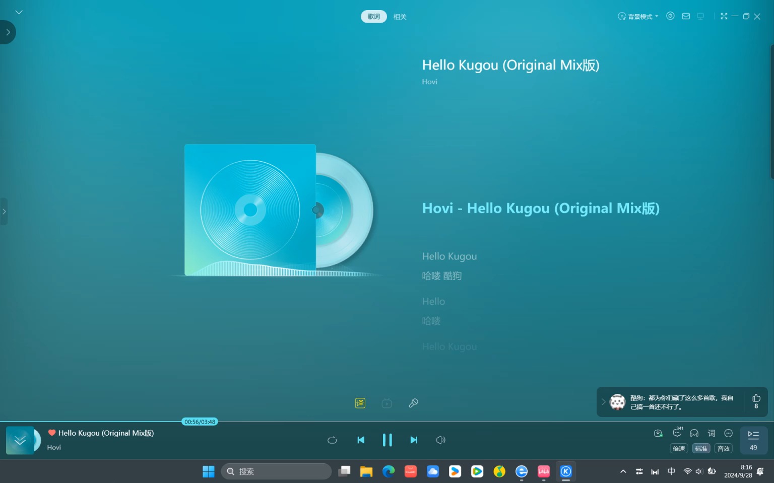 歌名:Hello Kugou(Original Mix版) 歌手:Hovi
