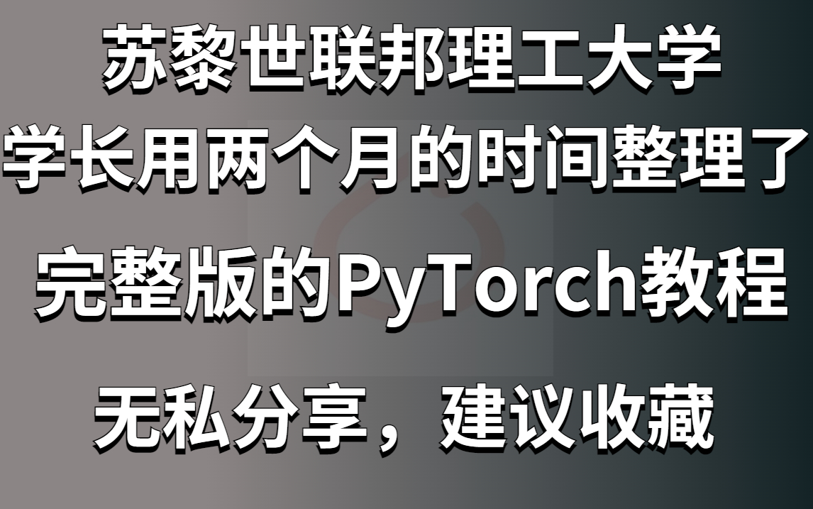 刷爆!【PyTorch入门教程】苏黎世联邦理工大学学长用两个月的时间...