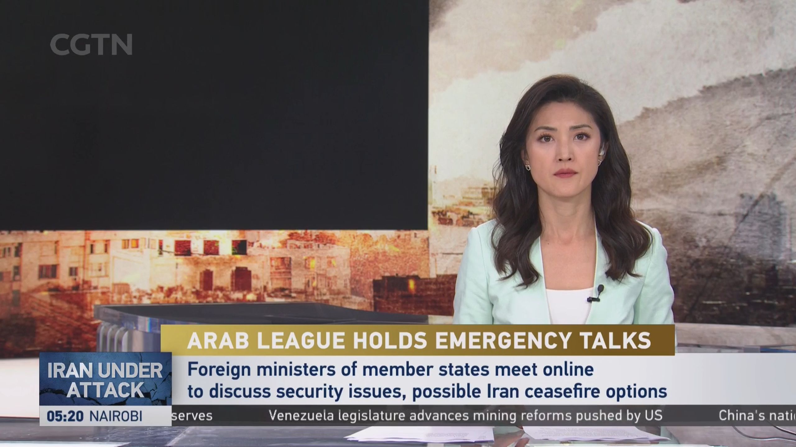 【放送事故】CGTN直播途中C01演播室大屏突然故障 紧急切换至另一机位(2026/03/10)