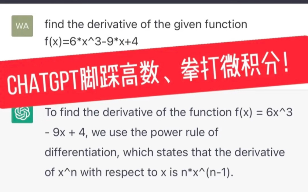 微积分一直是大家的数学噩梦,大家遇到不会的题除了问老师或者学霸也没有其他办法。而且标准答案一般只给个最后的结果,没有任何过程。之前所有的软件也都只能给一个最终答案,都没法给任何过程ߥ� 那么有没有一个软件可以给出详细的计算过程,理论依据和完全正确的答案呢?ߒ� ✅chatgpt来脚踩高等数学‼️ 如图,前两张是微分,后三张是积分。而且都是比较复杂的困难题目。办法也很简单,把题目直接输入ChatGPT就可以ߤ� 但是注意公式需要输入正确⚠️ 比如次方、括号、加减乘除需要输入对。 然后就可以观看chatGPT脚踩高等数学了ߘ� 理论依据、每一步过程、完整答案。思路清晰、公式正确、回答完整。 你是用来答题也好,用来学习难题也好,都是万能小帮手✅✅ chatGPT真的可以革命教育,不开玩笑ߔ�ߔ� #chatgpt[话题]# #CHATgpt[话题]# #chatGPT[话题]# #ChatGPT[话题]# #CHATGPT[话题]# #Chatgpt[话题]# #ChatGpt[话题]# #chatGPT日常[话题]# #chatgpt技巧[话题]# #ChatGPT玩法[话题]# #高数辅导[话题]# #高数二[话题]# #chatgpt杀手[话题]# #chatgpt[话题]# #高等数学[话题]# #高等数学二[话题]# #考研高等数学[话题]# #高等数学学习笔记[话题]# #专升本高等数学[话题]# #大一高等数学[话题]# #高等数学微课[话题]# #物理[话题]# #高中物理[话题]# #高中物理怎么学[话题]# #高中物理笔记[话题]# #高中物理题型[话题]# #考研高数[话题]# #考试[话题]##物理考试[话题]# #数学考试[话题]# #高中数学[话题]# #高数[话题]# #高中数学题型与技巧[话题]# #高中物理笔记[话题]# #高中数学题型与技巧[话题]# #高中考试[话题]# #高考[话题]# #微积分[话题]# #高考数学[话题]# #高考物理[话题]# #致高考[话题]##数学[话题]# #考研数学[话题]# #数学思维[话题]# #高中数学[话题]# #数学启蒙[话题]# #高数笔记[话题]# #我的考研[话题]# #23考研[话题]# #专升本高数[话题]#