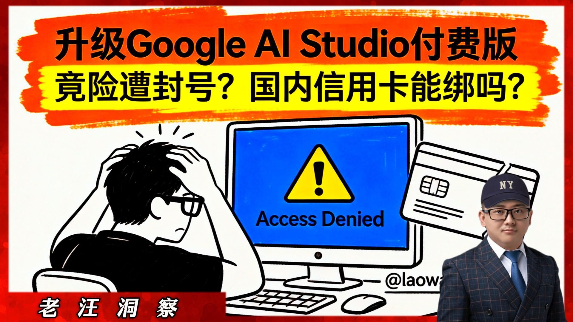 今天要跟大家分享一个“惊心动魄”的故事。最近为了突破Google AI Studio的免费版限制,我准备绑定信用卡升级Tier 1,结果刚提交资料,就收到了Google的红色警告邮件:“您的账号已被终止,请采取行动”! 当时我真的吓坏了,因为这个账号里存着我大量的Prompts和付费级资料。 经过排查,我发现是因为我的**“地址策略”出了大问题(香港转运地址 vs 常用IP冲突)。但万万没想到,最后帮我成功解封的,竟然是中国大陆身份证!😲 本期视频,老汪用“血泪教训”为大家探路,手把手教你如何安全开启Go